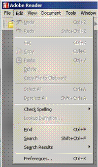 Figure 3 Selecting Adobe Acrobat Reader Preferences